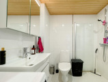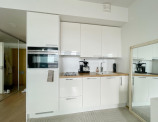 На кухне есть индукционная плита, встроенный комбинированный холодильник, индукционная посудомоечная машина и индукционная микроволновая печь с духовкой.