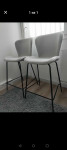 Myynnissä kaksi baari tuolia, väri light grey, korkeus kokonaisuudessaan 100 sm, tuolin selän korkeus on 37 sm, istuimen leveys 47 sm.