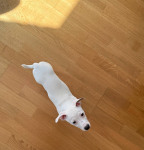 Луми — очень ласковая, умная и активная девочка, любит людей и быстро учится. Сейчас активно осваивает режим дня, учится спокойно отдыхать и “выключаться, хорошо спит ночью (8ч) в вольере и не боится его. Приучена к пелёнке, знает базовые команды. Сстается дома одна в вольере, но самостоятельно играет/спит вне времени активных занятий с нами. Оба родителя — джек-рассел-терьеры, родилась 10.01.2026