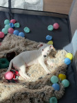 Луми — очень ласковая, умная и активная девочка, любит людей и быстро учится. Сейчас активно осваивает режим дня, учится спокойно отдыхать и “выключаться, хорошо спит ночью (8ч) в вольере и не боится его. Приучена к пелёнке, знает базовые команды. Сстается дома одна в вольере, но самостоятельно играет/спит вне времени активных занятий с нами. Оба родителя — джек-рассел-терьеры, родилась 10.01.2026